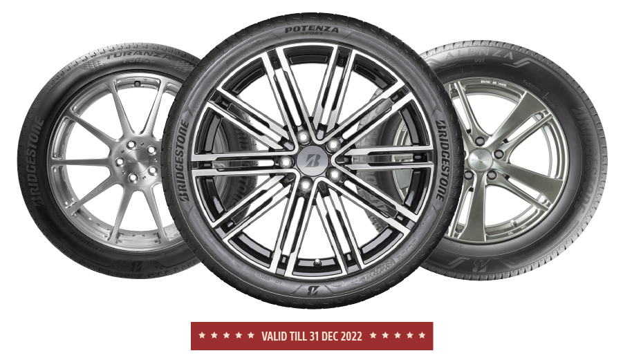 From now till 31 December 2022, enjoy up to $50 off* when you purchase any FOUR (4) pieces of eligible Bridgestone passenger car tyres under a single invoice transaction from any of the participating Bridgestone Authorised Tyre Dealers.